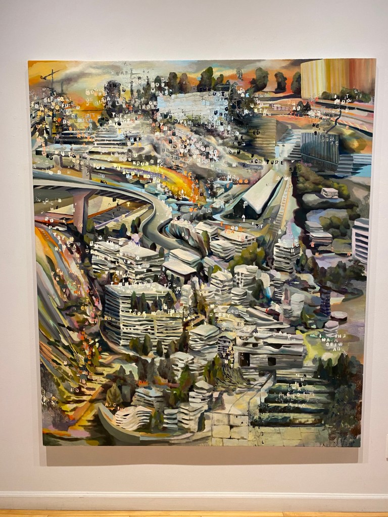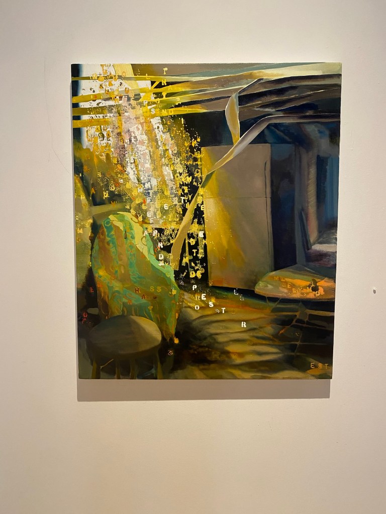 The controversy of AI art is alive and well. Artists and content creators alike are asking what the future of art looks like, and how well collaborate with AI. Etienne Zeke’s answer is in Mind Pictures, at the Michael Gibson Gallery. These painterly, ephemeral sceneries are interior rooms and city landscapes, gleaned and sorted from a jumble of choppy letters.