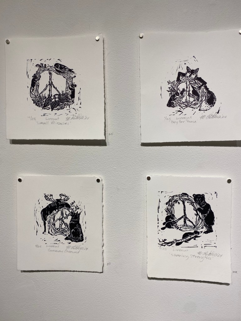 Many of the prints are focused on the natural world, a world of tiny things— insects, botanicals, other small animals. These small and familiar lives relate easily in the format.